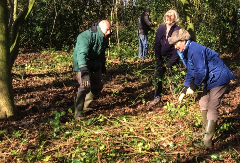 On Sunday 18th February Ann had a wet time in Merton Wood opening up more of the new main ride and on 25th February five of us joined the Vicarage Grove session. The weather was much kinder on this day, although a cold wind was blowing it was sunny and bright. It was rewarding to see a big difference at the end of the day when lots of the invasive holly had been cleared. Bluebell leaves were springing up under our feet and this year there should be enough light for them to flower. – John