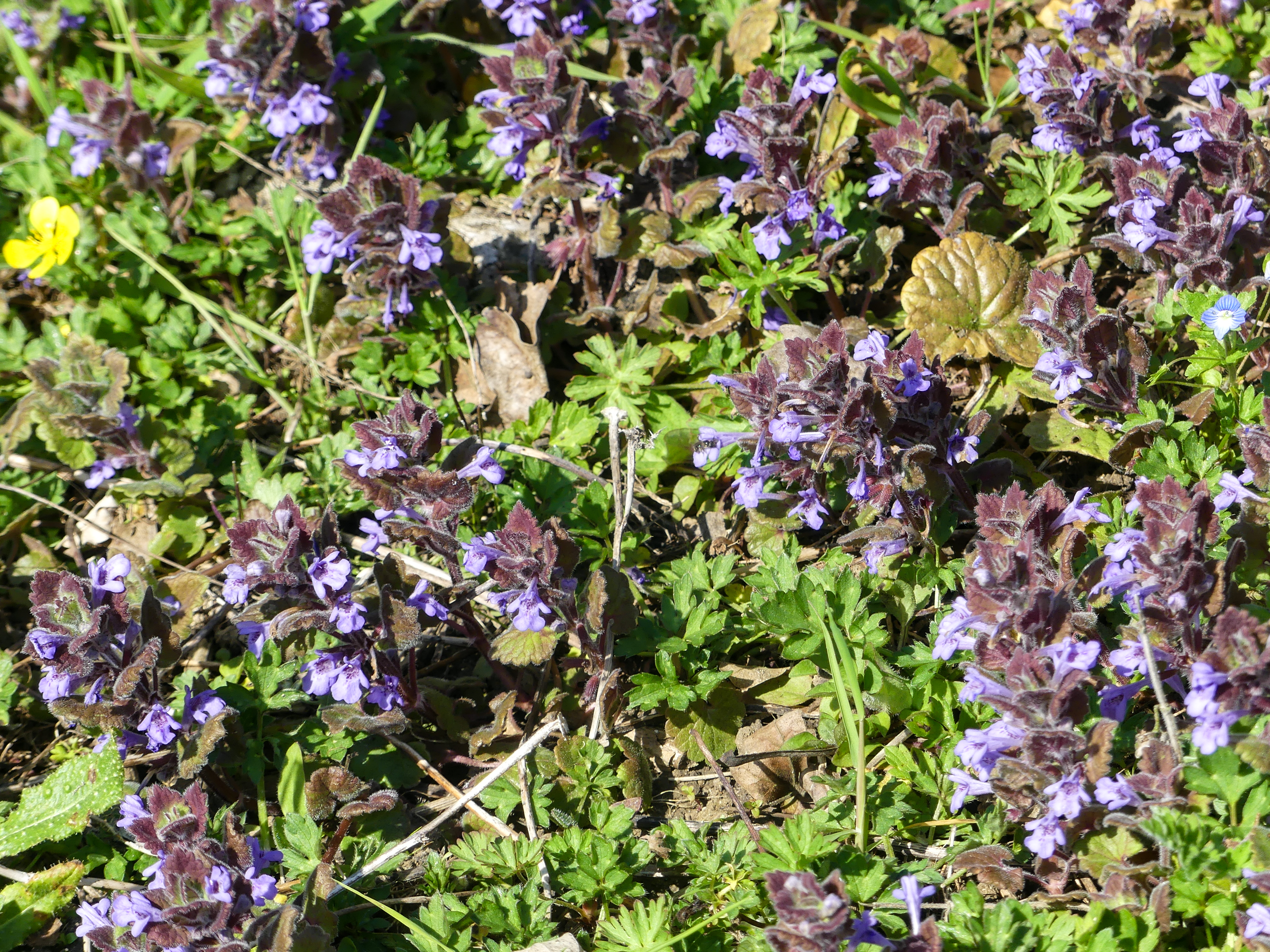 On a recent walk in Grove Piece we found a large patch of Ground Ivy (Glechoma hederacea) near to the north hedge. Ground Ivy is, or was, also known in East Anglia as Tunhoof. Before the introduction of hops Ground Ivy was the main means of adding bitterness when brewing, or tunning, beer. The Old English name is Hofe , so Tunhoof came from combining the two words.