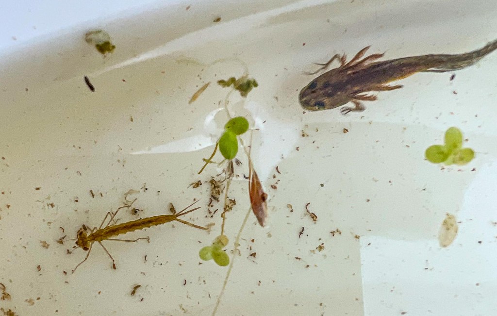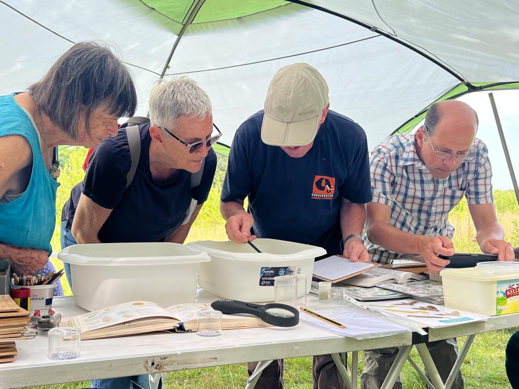 There were two particularly pleasing aspects to this year’s Bioblitz. The first was finding that the newly restored pond in The Copse is already teeming with life. Alan found the waterweed soft hornwort, and a variety of aquatic animal life, smooth newts, water boatmen, pond skaters, chironomid larvae and mayfly larvae. In addition broad bodied chaser and large red darter dragonflies were hunting over the water. As the pond matures I am sure we will find many more species.