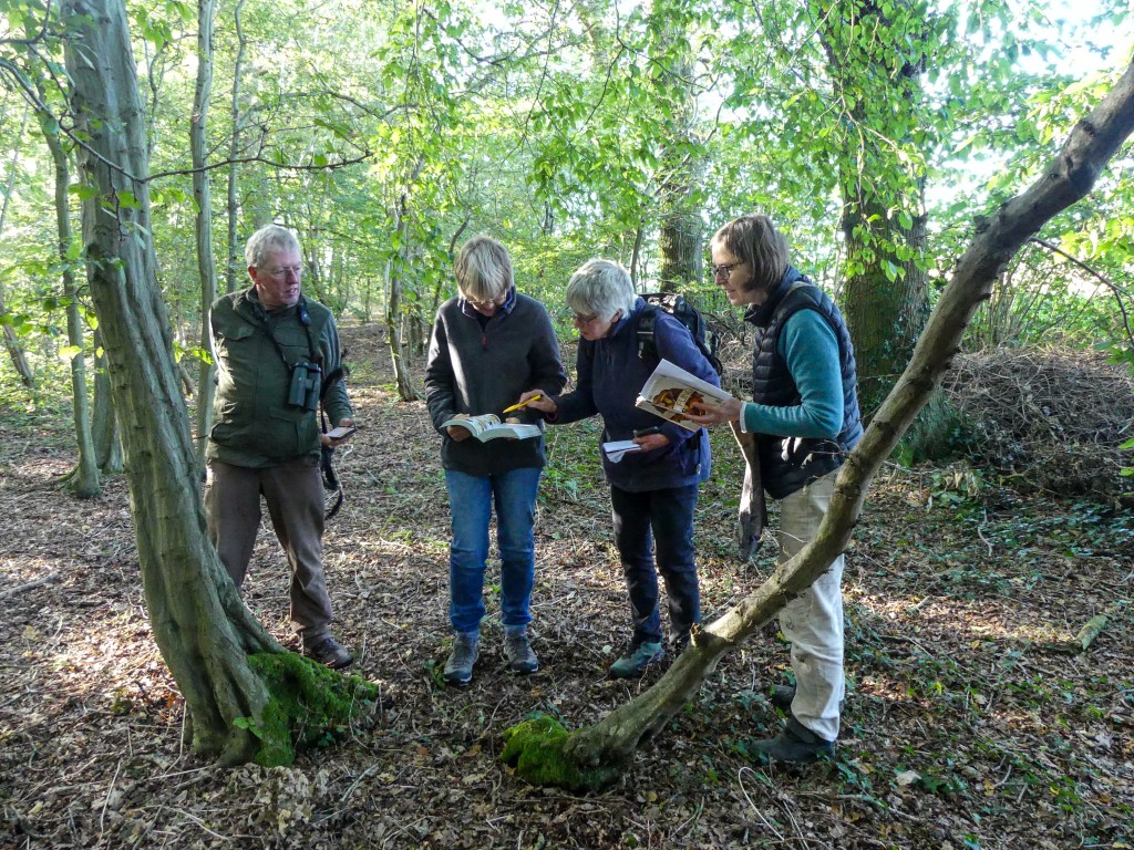 On October 14th a few of us slowly worked our way through Vicarage Grove, trying with the aid of Field Guides and mobile phone apps to identify as many species as we could. We soon found that many fungi were just as difficult to identify as we had expected but at least the apps could save some time by getting us quickly to the right group of fungi. A few hours later we had a list of fungi that we felt confident that we had identified correctly, together with photos. Finding two deadly poisonous fungi was a very good reminder to make absolutely certain of the identify of any fungi before eating them!
